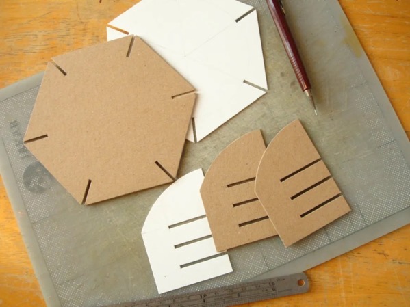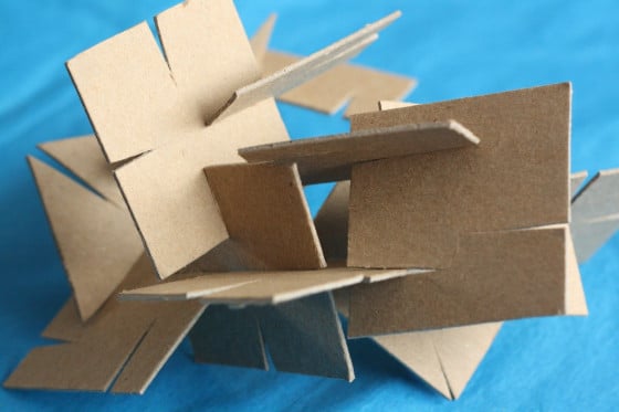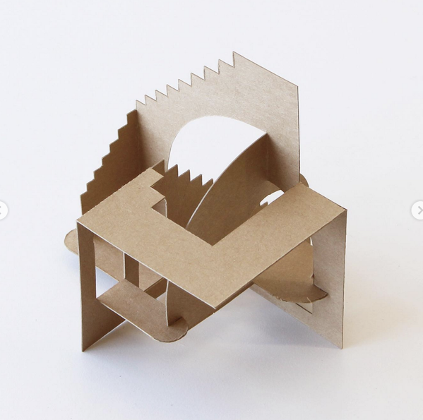 Use cut, folded, and slotted planes to generate a complex spatial structure where inside and outside shift through overlap and penetration. The goal is to imply multiple volumes through planar relationships rather than surface enclosure. Using either of these thechniques, along with cutouts, create a dynamic space where the outside becomes the inside and vice-versa. You may use multiple sheets of chipboard.