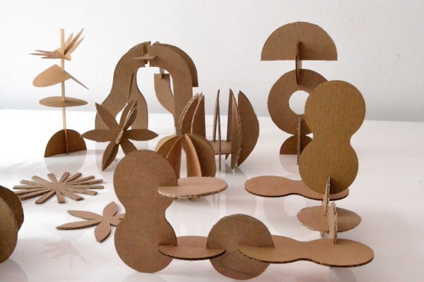 In this assignment you will be building 3 small sculptures that imply forms in different ways. One will be constructed from planes, one from lines, and one from both. Your materials will be chipboard, square wooden dowels, and hot glue.